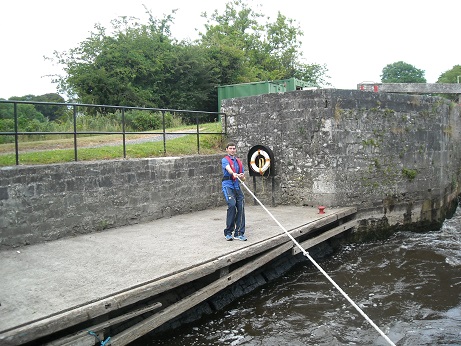 Mit Muskelkraft öffnete er die Schleuse und ich sollte einfahren. Leichter gesagt als getan.....der Winkel war viel zu steil.